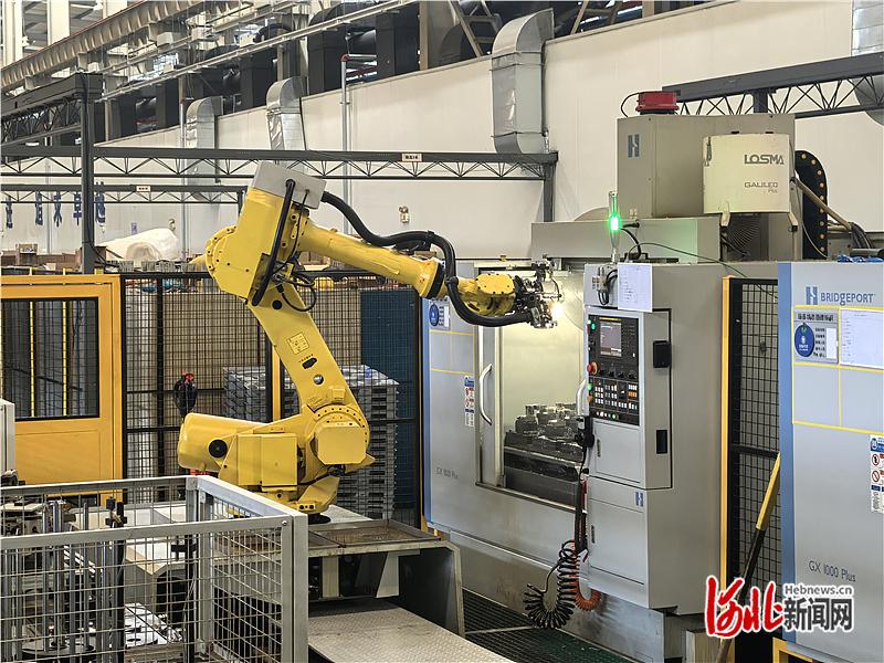 10月13日,智昆科技智能制造工厂,工业机器人正在操作数控机床。 河北日报记者 潘文静摄